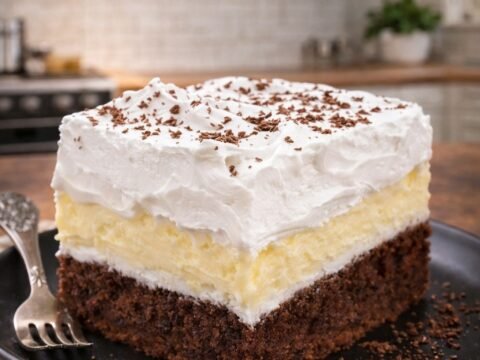 KOLAČ SA KREMOM I PJENOM – STARINSKI RECEPT Ovaj kolač je prava klasika – mekan biskvit, bogata žuta krema i lagana pjena odozgo čine savršenu…