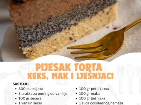 Sastojci: Srce ove torte Količine u ovom receptu su prilagođene manjem kalupu (oko 18 cm prečnika), a ako želite klasičnu tortu od 26 cm, sve…