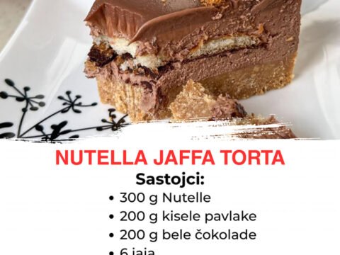 Sastojci za koru: 6 jaja 6 kašika šećera 6 kašika brašna 1 prašak za pecivo Sastojci za kremu: 300 g Nutelle 200 g kisele pavlake…