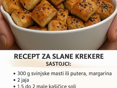 Potrebno je: 300g svinjske masti ili putera, margarina 2 jaja 1,5 do 2 male kašičice soli 2 dl belog vina 1 prašak za pecivo 500g…
