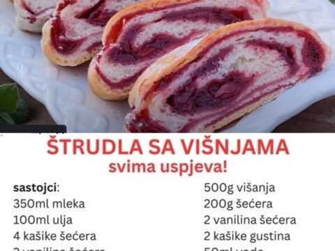 ŠTRUDLA SA VIŠNJAMA POGLEDAJTE RECEPT NA LINKU U KOMENTARU ⬇️⬇️⬇️