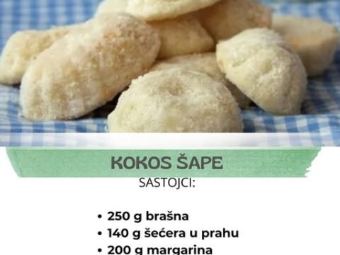 Starinski recept sa novim ukusom kokosa Sastojci 250 gr brasna 140 gr prah secera 200 gr margarina 150 gr kokosa 2 kasike meda Priprema 1….
