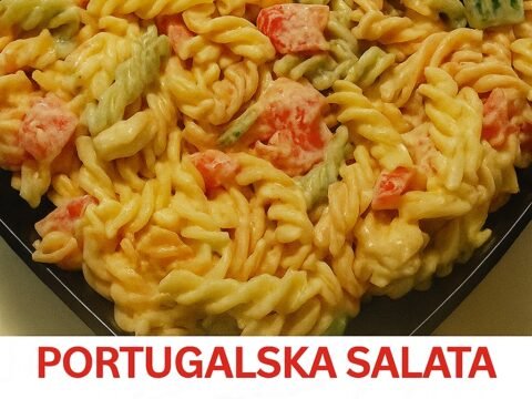 Sastojci potrebni za pripremu portugalske salate: 250 g šarene tjestenine 1 komad pilećih prsa 1 zelena mesnata paprika 2 svježe rajčice začin za pečenu piletinu…