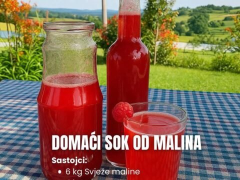Sastojci 6 kg Svježe maline 4 l Voda 1 kg Šećer (1 kg na 1kg soka) 6 vrećica Limuntos 1 kom Konzervans Priprema Priprema malina: Maline pažljivo operite pod mlazom hladne vode i odstranite sve nečistoće….