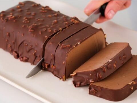 Sastojci: 900 ml mleka 1 kašika želatina 500 g čokolade (200 g tamne, 300 g sa sitnim lešnicima) 3 kašike ulja Priprema: U mleko dodajte…