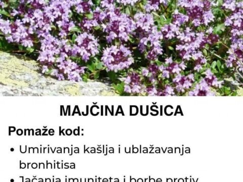 Majčina dušica (Thymus vulgaris) je aromatična biljka koja je već stoljećima poznata zbog svojih ljekovitih svojstava. Svojim snažnim antiseptičkim, antibakterijskim i antimikrobnim djelovanjem, majčina dušica…