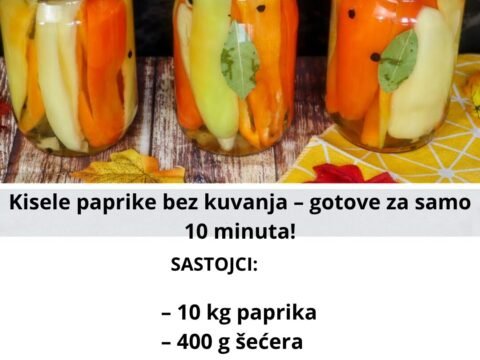 Kisele paprike bez kuvanja – gotove za samo 10 minuta! KISELE PAPRIKE BEZ KUHANJA ZA 10 MINUTA. Sastojci: – 10 kg paprika – 400 g…