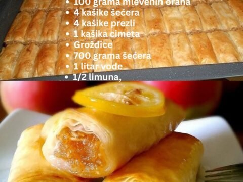 🍏 Jabukovača – tradicija u svakoj korici Sastojci Za pitu: 1 pakovanje gotovih jufki (kora za pitu) 6 jabuka (oljuštenih i izribanih) 200 g putera…