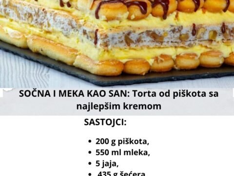 Ne možete da joj odolite! MARKIZA TORTA koja osvaja sve! Jedna od torti koje se najbrže spremaju, jer ne zahteva pečenje u rerni. Sastojci: 12…