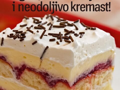 *Sastojci:** **ZA BISKVIT:** * Jaja: 4 * Granulirani šećer: ½ šolje * Brašno (pšenično): 1 ½ šolje * Prašak za pecivo:…