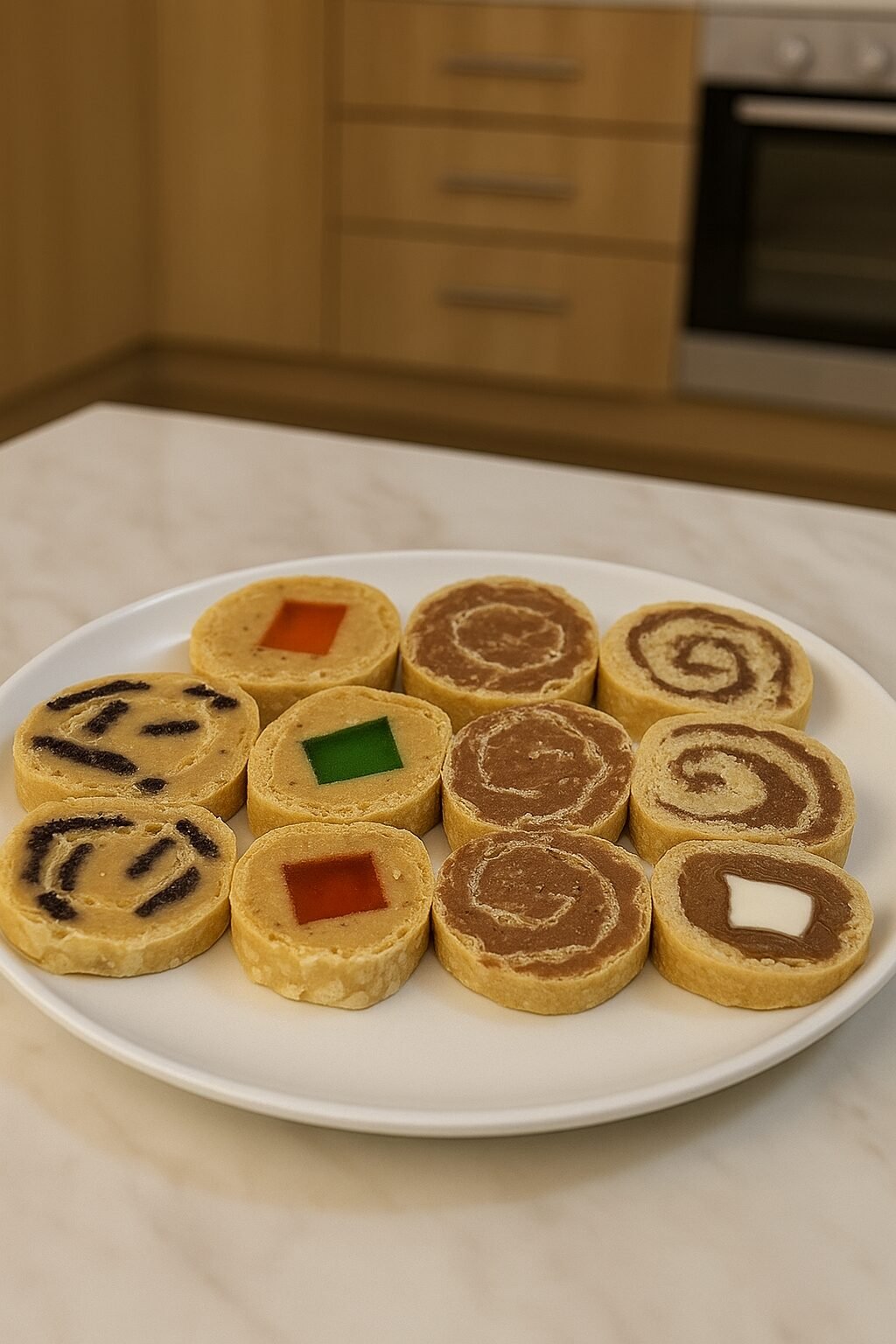 Svaku rolat varijantu ostavi u frižideru minimum 1–2 sata da se stegne i preseče lepo.