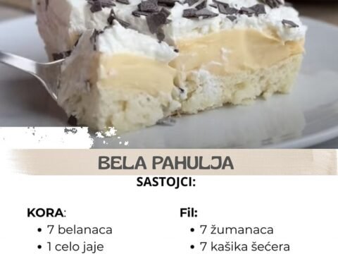 Sastojci za koru: 7 belanaca 1 celo jaje 7 kašika šećera 7 kašika brašna 3 kašike mlake vode Fil: 7 žumanaca 7 kašika šećera 6…