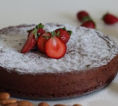 Foto: Shutterstock Sastojci: 250 g crne čokolade za kuvanje 200 g maslaca 4 jaja 180 g šećera 300 g mlevenih badema (ili bademovog brašna) šećer u…