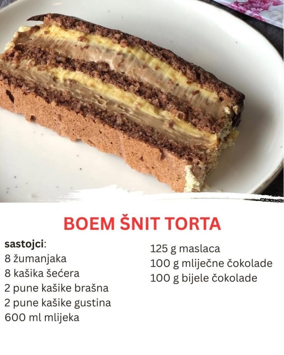 Ako volite torte koje kombinuju klasične sastojke i sofisticiran izgled, ova torta je pun pogodak. Uz minimalno dekoracije i maksimalno uživanja, Boem šnit torta zaslužuje da se nađe u vašoj kuharici kao recept koji se uvijek iznova pravi.