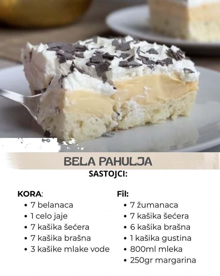 Priprema: Razdvojimo belanca od žumanaca. Belanca umutimo uz dodavanje šećera, dodamo brašno, mlaku vodu i jedno celo jaje. Koricu dobijenu od belanaca ispečemo.