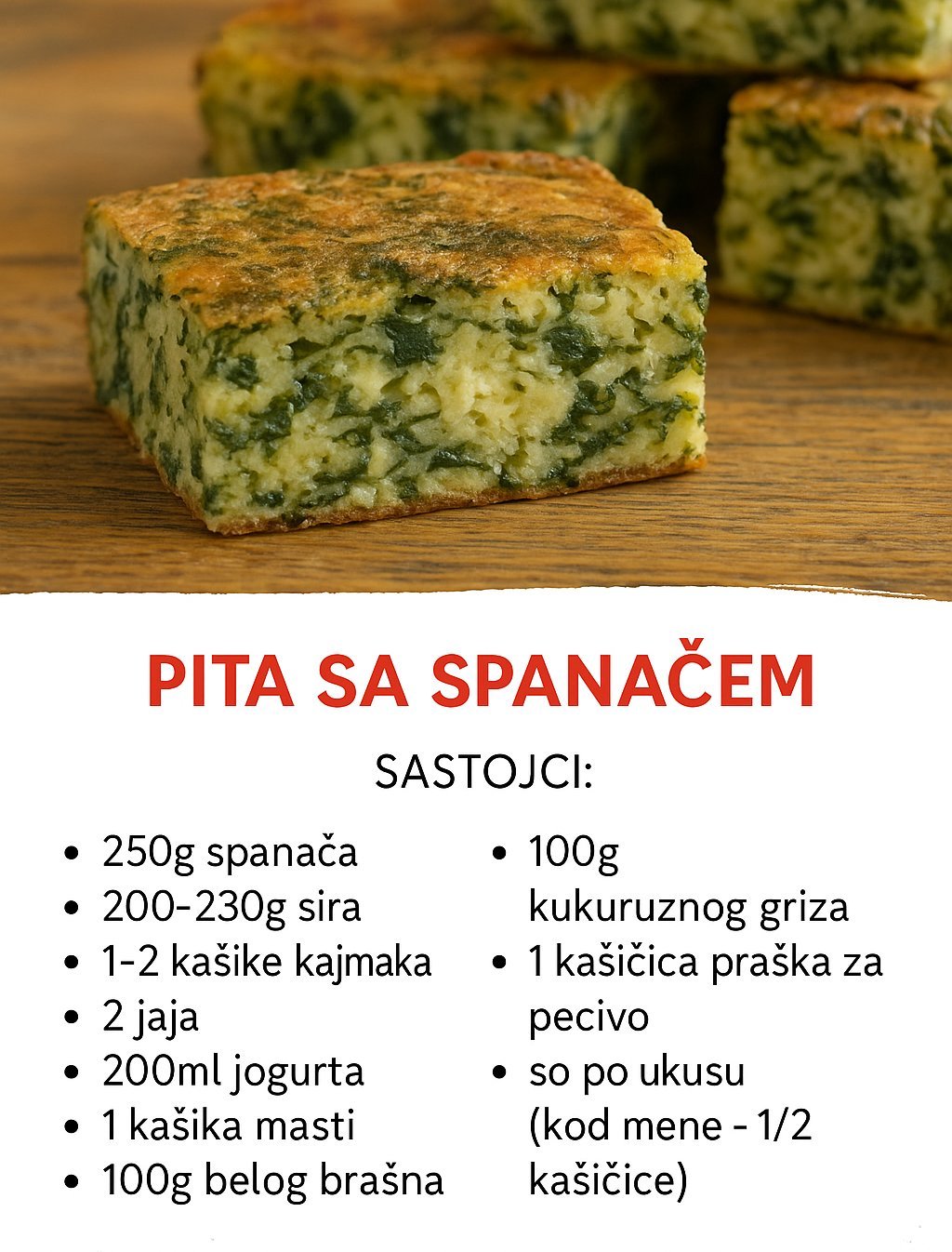 Ova količina odgovara plehu veličine oko 17×30 cm, a ako imate manji ili veći, možete proporcionalno prilagoditi sastojke.
