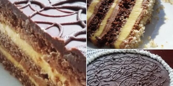 Ja sam ovaj put pravila 3 odvojene kore, 4 belanca, 4 kasike secera, 80 gr lesnika i 5 gr kakao, a za glazuru napravila ganache od 200 ml slatke pavlake i 150 gr cokolade. Torta je divna, nema kome se ne svidja…