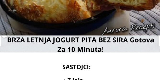 Ova pita se pravi neverovatno brzo i lako – bez sira, bez komplikacija, a savršeno mekana i sočna! Potrebno vam je samo nekoliko osnovnih sastojaka i 10 minuta pripreme. Idealna za doručak, užinu ili večeru.
