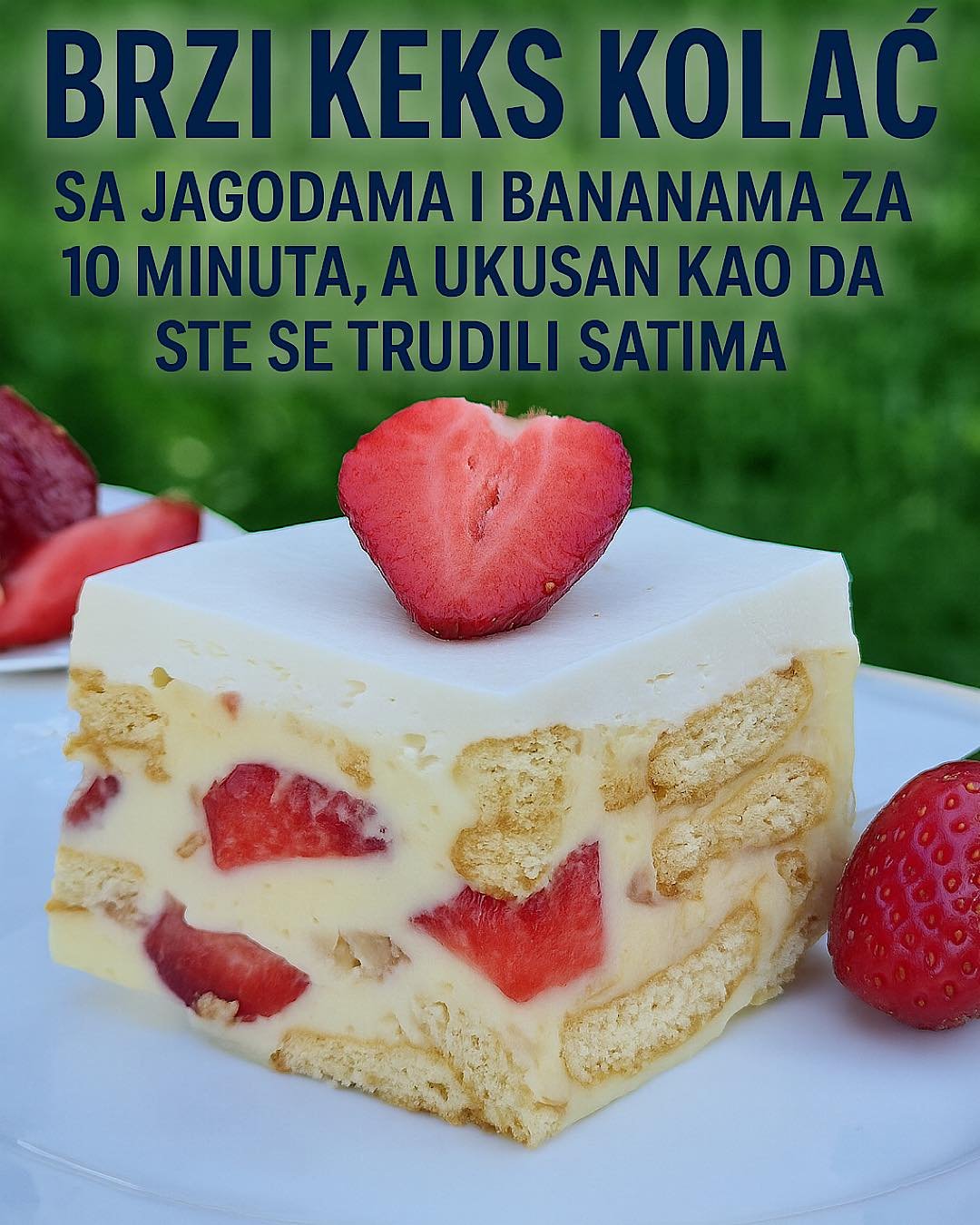 BRZI KEKS KOLAČ sa jagodama i bananama za 10 minuta, a ukusan kao da ste se trudili satima.
