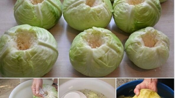 Nagurajte u kantu koliko moze da stane celih glavica, a ostalo isecite na polutke ili četvrtine i ugurajte izmedju glavica (ovo ce biti za salatu ili podvarak).