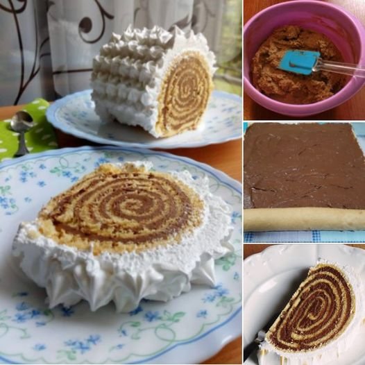 Umutiti 10 belanaca u cvrst slag, polako dodavati kasiku po kasiku secera . Dodati zumanca ,brasno i prasak za pecivo. Kod mene su od ove smese, dobijene cetiri taaanke korice u plehu 25×45.U pleh se stavi papir za pecenje i kutlacom se dodaje smesa (u mom slucaju za jednu koricu su trebale 4 kutlace smese). Bude bas tanko tek da lepo prekrije papir. Pece se jako kratko -treba da ostane svetla. Kad vam se ucini da je gotovo, otvorite rernu i samo pipnite koru od gore-ako se ne lepi testo-gotovo je. Vadite koru sa papirom za pecenje i urolate u rolat-sa papirom. Tako radite dok sve ne potrosite.