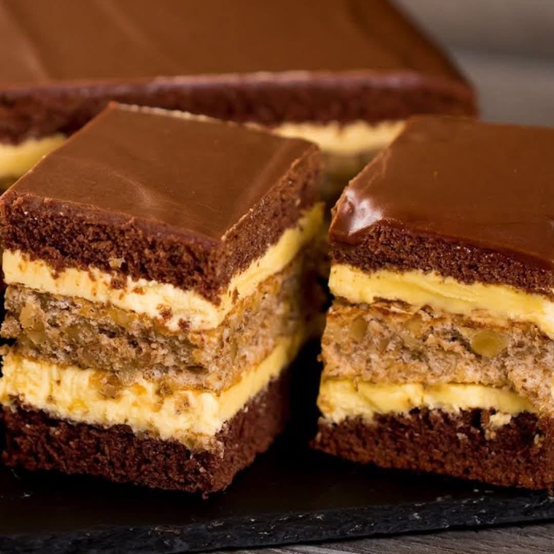 Sa dva meka biskvita, bogatim kremama i prelepom glazurom, svaki zalogaj ovog kolača pruža nevjerojatno bogatstvo okusa i tekstura. Prvo se topite u sočnom biskvitu, zatim u kremastoj kombinaciji žumanaca i maslaca, a na kraju uživate u savršenoj čokoladnoj glazuri. Ovaj kolač je prava poslastica koja će vas osvojiti i na prvi zalogaj!
