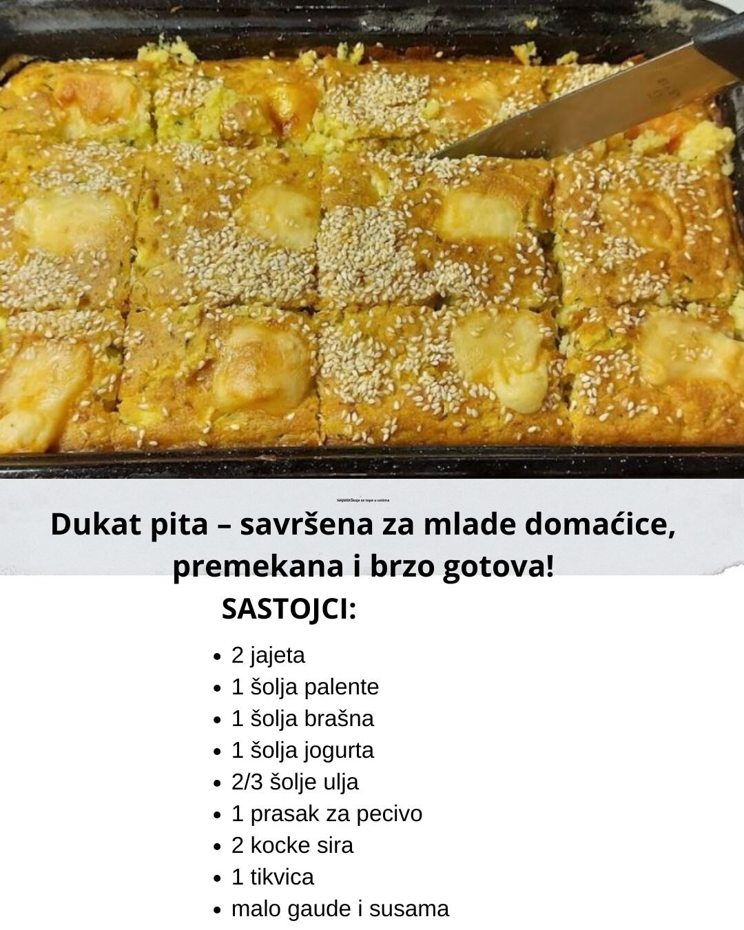 “Hajde da napravimo ovu jednostavnu ,a tako ukusnu DUKAT PITU koja se kod nas pojela za čas.