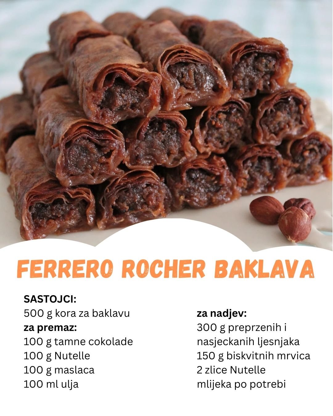 Za baklavu su potrebni sledeći sastojci: