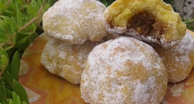 Pravite male loptice koje malo rastanjite i stavljate fil. Zatvorite loptice, i okrenete na onu stranu gde je zatvorena.