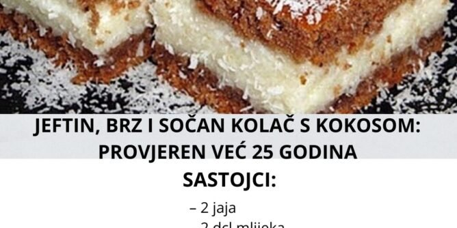 Gore možete staviti čokoladnu glazuru ili posuti kokosom. Može se i ostaviti kako je pečen jer je kora lijepa i glatka.