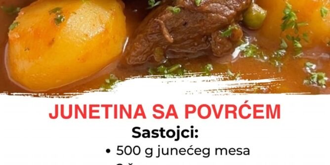 Priprema mesa: Junetinu isecite na kocke ili trakice, u zavisnosti od želje. Na srednje jakoj vatri zagrejte maslinovo ulje u većoj tavi i propržite meso dok ne dobije lepu zlatno-smeđu boju. Posolite i pobiberite.