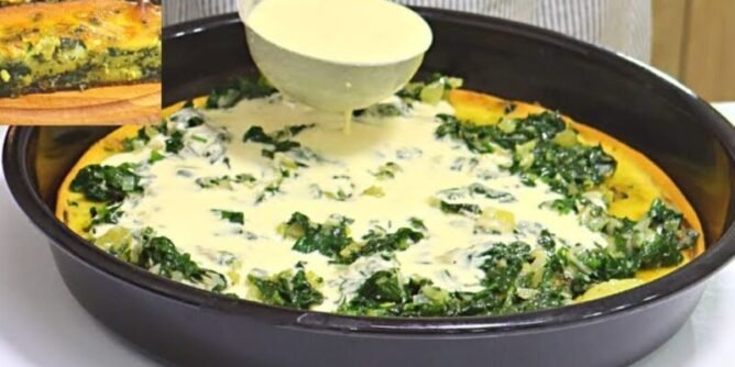 Priprema: U litar vode dodajte so i ulje, sodu bikarbonu. Zatim prosejte kukuruzno brašno i pešnično pa lepo izmutite sve sa vodom. Praziluk iseckajte, kao i paprike iz turšije i sve propržite na malo ulja. Dodajte i spanać pa sve izdinstajte. Ugrejte rernu na 200 stepeni Celzijusa. U tepsiju izlijte smesu od brašna, pa dodajte fil, pa preko prelijte još smese od brašna i sve pecite dok ne dobije zlatnu boju. Prijatno!