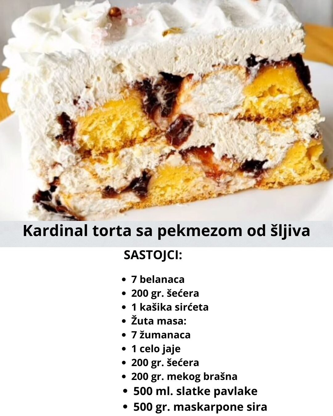 Sastojci za koru: 7 belanaca 1 celo jaje 7 kašika šećera 7 kašika brašna 3…