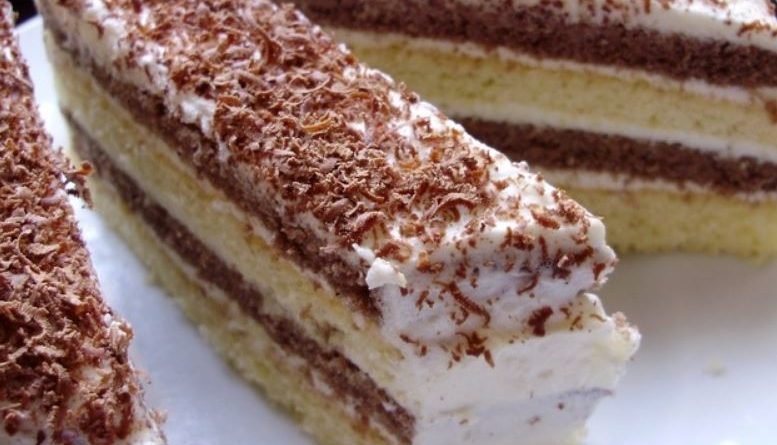 Miksati biskvit od žutanjaka, vode i šećera dodajući ulje, brašno s praškom za pecivo i snijeg od bjelanjaka.
