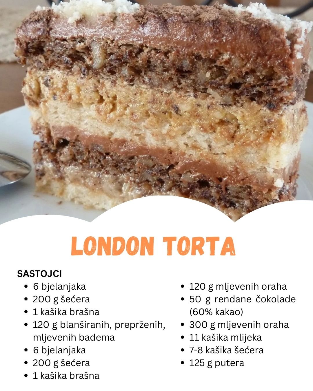 London torta sastoji se od nekoliko ključnih komponenata: korica s badema i oraha, te bogatih filova koji čine osnovu ovog izuzetnog deserta. Slijedi detaljan opis kako pripremiti svaku od ovih komponenti.