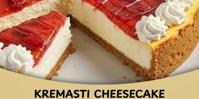 Umuti krem sir sa šećerom, brašnom, rumom i vanilijom. Dodaj jedno po jedno jaje, miksaj lagano, pa umiješaj pavlaku i žumanca. Sipaj smjesu preko kore i peci 70–75 minuta – sredina treba biti skoro čvrsta.