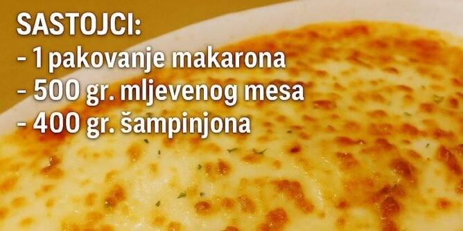 Zapečeni makaroni sa mljevenim mesom i šampinjonima.
