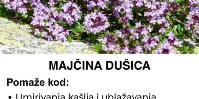 Majčina dušica (Thymus vulgaris) je aromatična biljka koja je već stoljećima poznata zbog svojih ljekovitih svojstava. Svojim snažnim antiseptičkim, antibakterijskim i antimikrobnim djelovanjem, majčina dušica je izvrstan prirodni lijek za brojne tegobe, a posebno je korisna za zdravlje dišnog sistema, imunitet i opuštanje.
