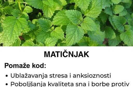 Matičnjak (Melissa officinalis) je biljka koja je poznata po svom umirujućem mirisu i mnogim ljekovitim svojstvima. Kroz istoriju, koristi se u tradicionalnoj medicini kao prirodni lijek za smanjenje stresa, poboljšanje kvaliteta sna i poboljšanje probave.