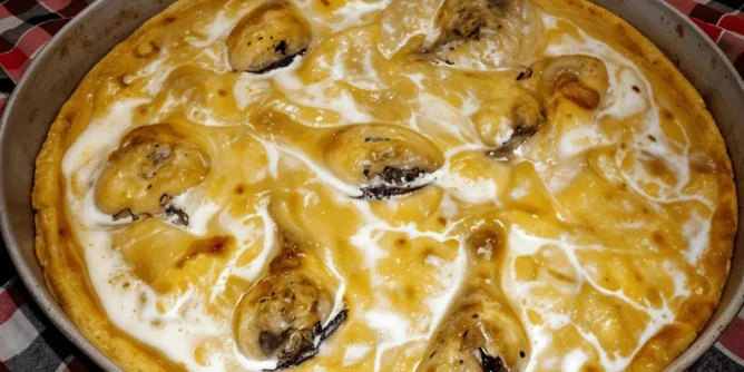 Razmućena jaja pomiješajte s brašnom, soli, mlijekom i smjesu ostavite stajati 10-15 minuta. U vatrostalnu posudu ili pleh stavite preostalo ulje i zagrijte ga.