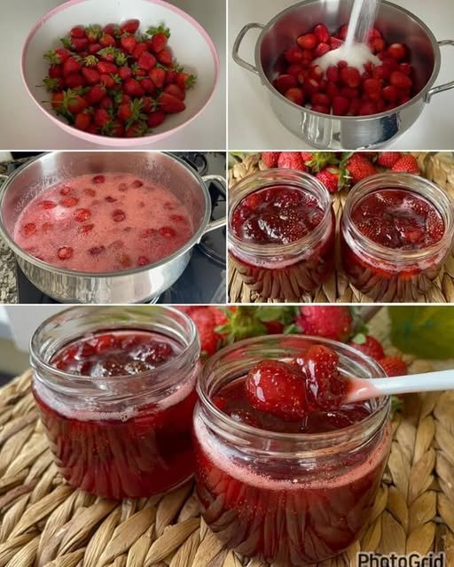 Prvo ih dobro operite, pa zatim poređajte u jedna red jagoda u šerpu i pospite šećerom. Ostavite tako da odstoje sat vremena. Potom stavite na šporet i kuvajte oko pola sata na najvišoj temperaturi.