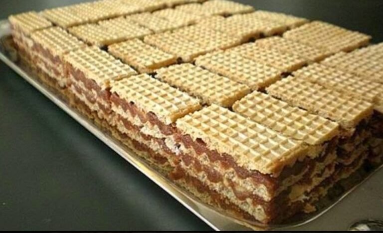 Pomiješati navedene sastojke i zajedno kuhati 7 minuta, a zatim složiti kolač, raspoređujući ravnomjerno nadjev preko oblatni.