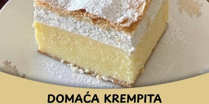 Na donju koru rasporedi cijelu kremu, poravnaj i na vrh složi kvadrate druge kore. Po želji pospi šećerom u prahu i ostavi da se stegne nekoliko sati u frižideru.