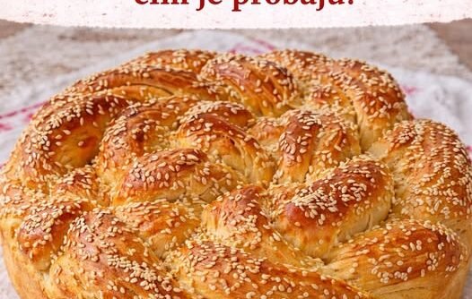 Kada složiš pogaču, ostavi je još 20 minuta da blago naraste. Zatim je premaži mešavinom žumanca i malo ulja ili mleka kako bi dobila sjajnu, zlatnu koricu. Pospi susamom za dodatni ukus i izgled.