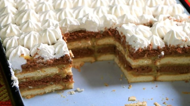 Na tepsiju dimenzije 20 x 30 složite red keksa, pa red vrelog fila, keks, fil, keks, fil, keks. Umutite slatku pavlaku i završite kolač. Ostavite u frižideru da se hladi, najbolje do sutradan jer keks treba da omekša. Prijatno.