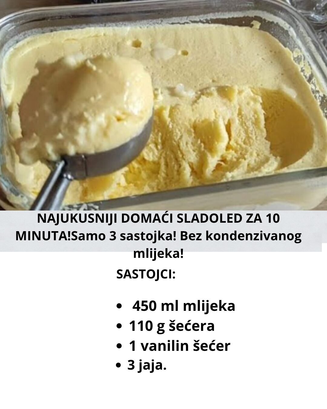 Najukusniji domaći sladoled za 10 minuta. Samo 3 sastojka. Domaći sladoled iz djetinjstva kremast i ukusan.Najjednostavniji recept.