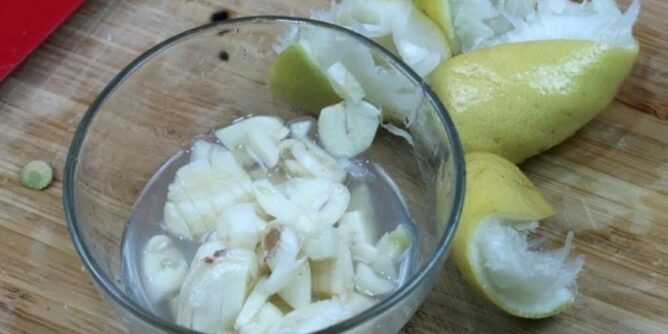 Priprema: U blenderu sameljite beli luk. Dodajte dobro oprane limunove (sa korom) i sve zajedno blendujte. Sve dobro izmješajte i sipajte u staklenu teglu. Teglu nemojte zatvarati poklopcem, već prekrijte gazom.