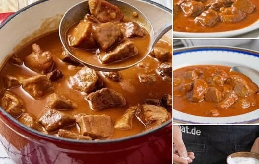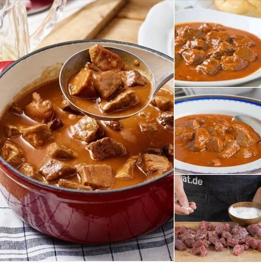 Gulaš se može poslužiti s tjesteninom, pire krumpirom ili palentom. Za gušći gulaš, smanjiti količinu vode za pola litre i izostaviti krušne mrvice.