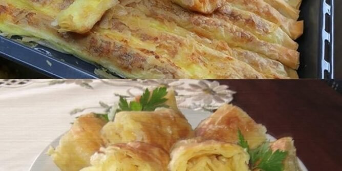 Ivice kora saviti da fil nebi curio, pa sve saviti u rolnu. Staviti u podmazan pleh i peći 35-40 minuta na temperaturi od 220°, da pita porumeni.
