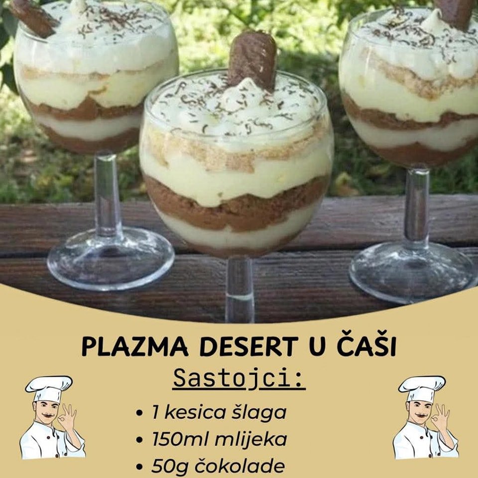 Na dno desertne case staviti po kasiku coko-plazma smese, zatim 2 kasike pudinga, na puding naneti 1 kasiku coko-plazma smese pa 1-2 kasike slaga i posuti sa 1 kasikom plazme.